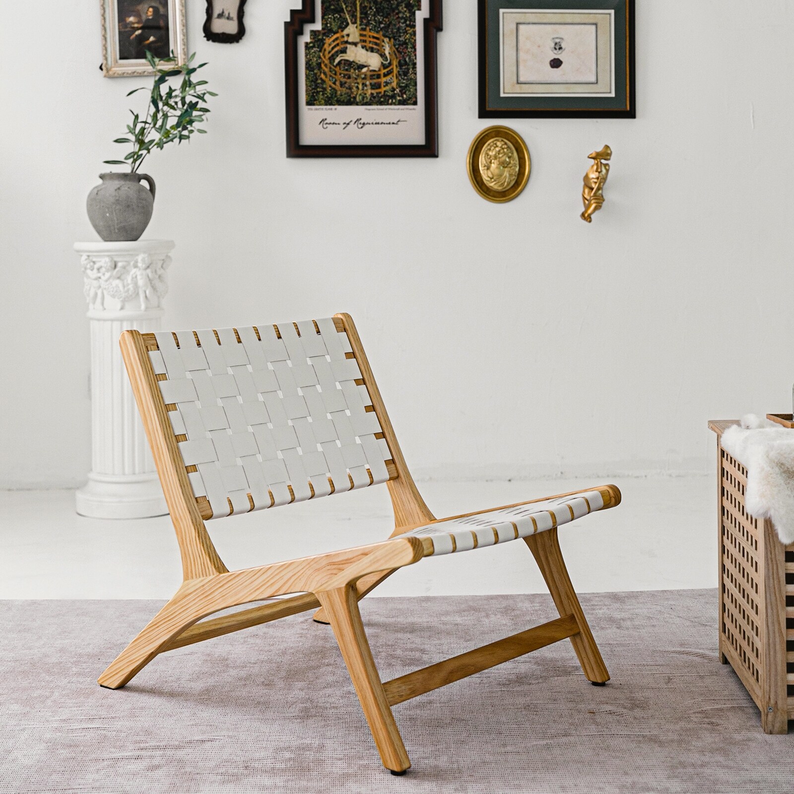 Mid Century Modern Leather Woven Retro Accent Chair Armchair Wooden Lounge Chairs Safari Recliner Overstock 35271176